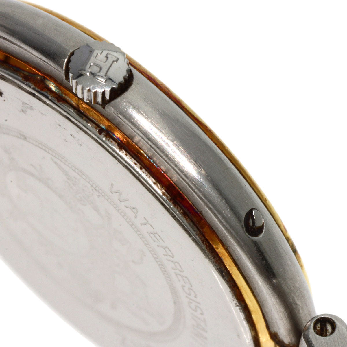 | Condition | ?Condition Damage: Case) Rubbed/Scratches/Dent Bezel) Rubbed/Scratches/Dent/Metal stripping/Discolors Band) Rubbed/Scratches/Dent/Metal stripping/Discolors/Rust Crown) Scratches Clasp) Dent/Rubbed/Scratches Back cover) Rubbed/Scratches/Discolors ?Notes There are scratches all over. There is rust on the bezel and belt. There is stain on the glass inner. There are scratches on the back cover due to prying. |