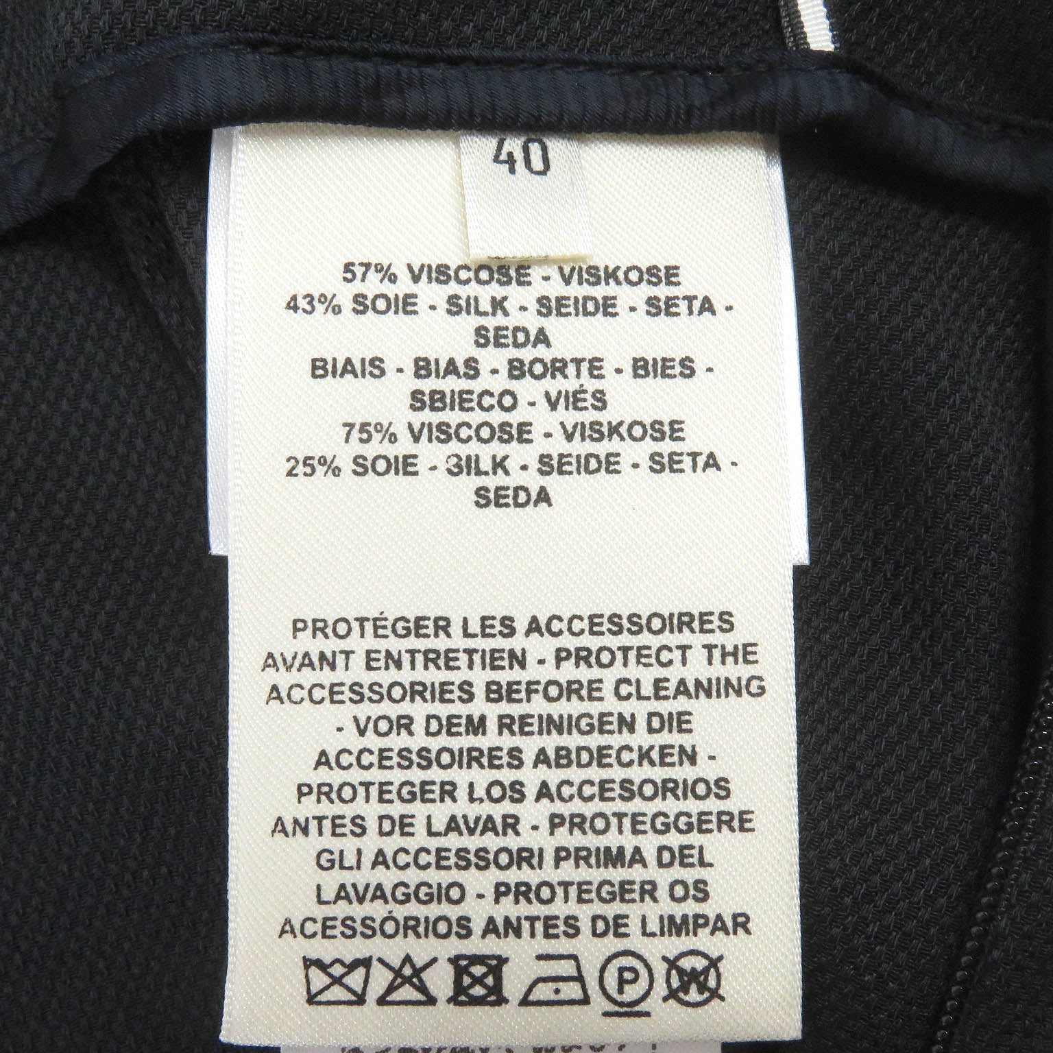 | Material | Outer: 57% rayon, Outer: 43% silk, Lining: 65% rayon, Lining: 35% silk, Piping: 75% rayon, 25% silk |