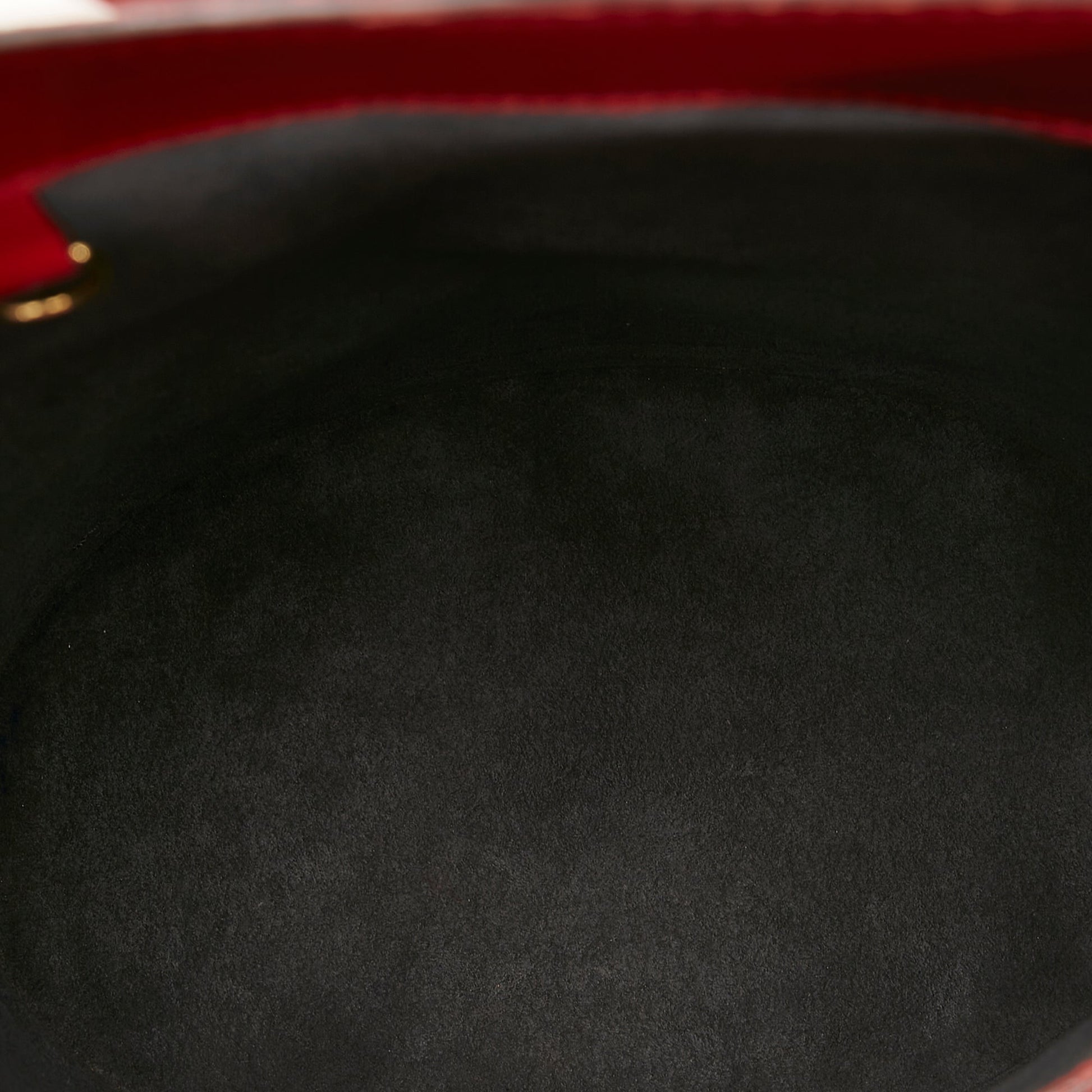 Die wunderschöne Louis Vuitton Cluny Tasche in rotem Epi Leder. Sie lässt sich oben mit einer kleinen Klappe mit Drehverschluss schliessen und der Lederriemen ist verstellbar. Der Innenraum ist mit Alcantara-Futter ausgestattet und bietet ein kleines offenes Fach. Die Tasche wird nicht mehr hergestellt.