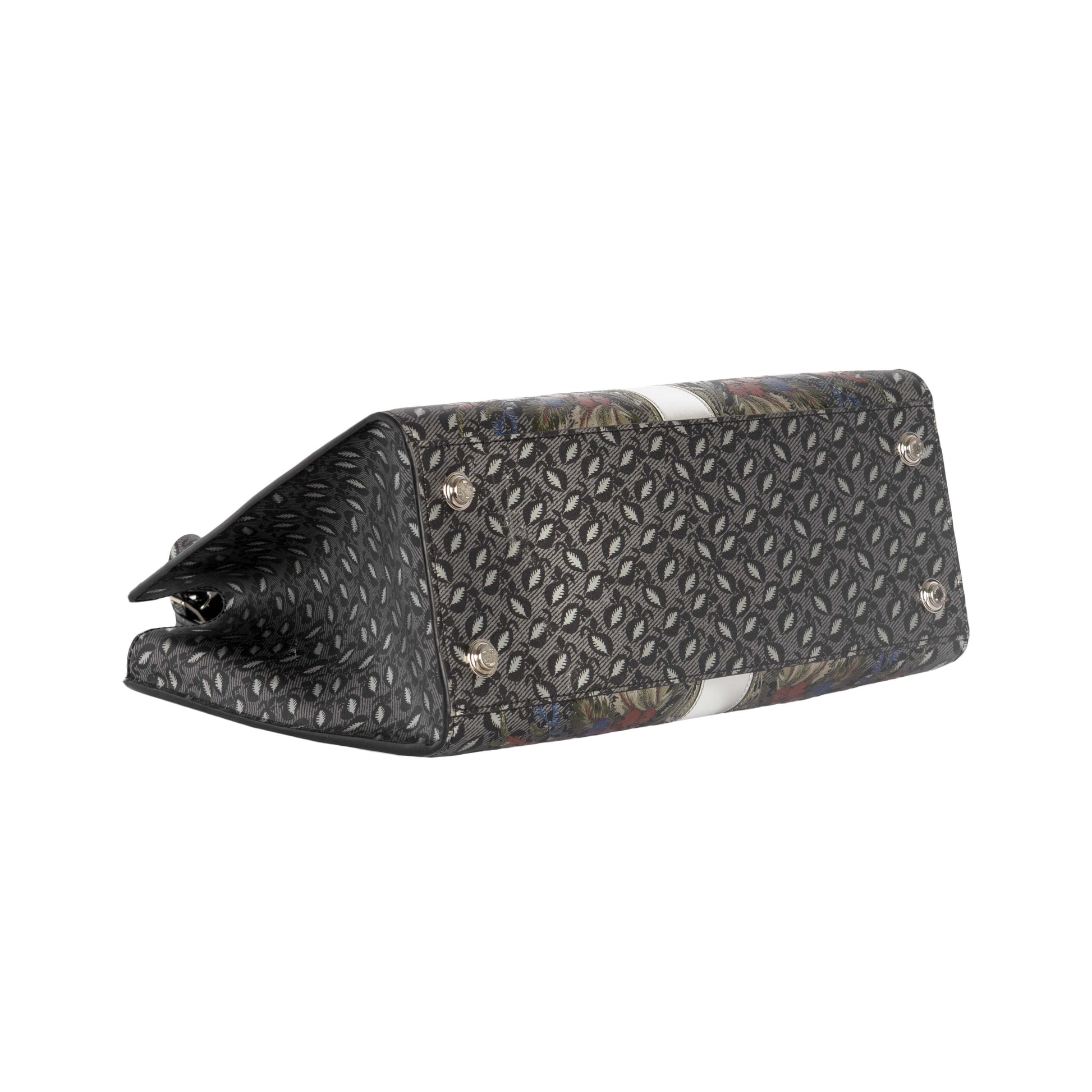 With the romantic multicolored floral print accentuated by with silver panel in the center, the metallic attachments and hardware are engraved with brand emblems such as the monogram and brand name. Inclusions: Dust bag, Strap, Keys, Lock, Luggage tag NFT option available. Discover more.