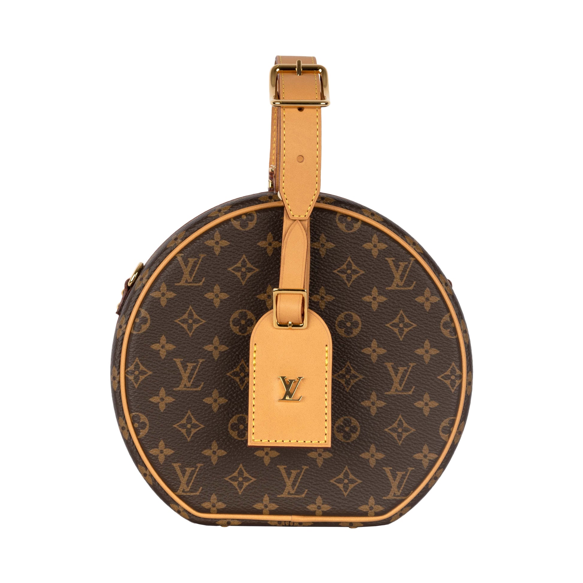 Inspired by the brand's travel history, the Louis Vuitton Petite Boite Chapeau features the brand monogram on its signature cowhide fabric.