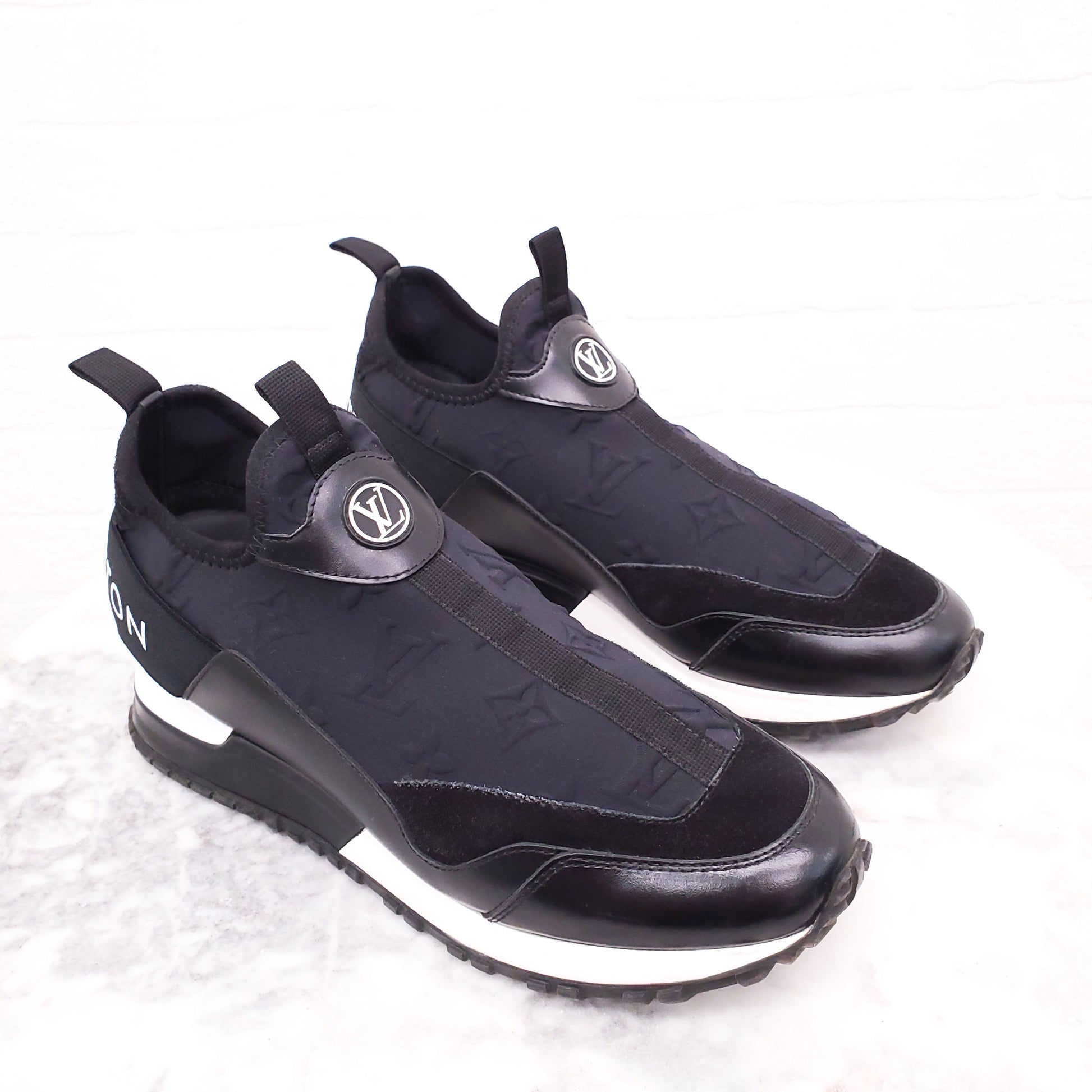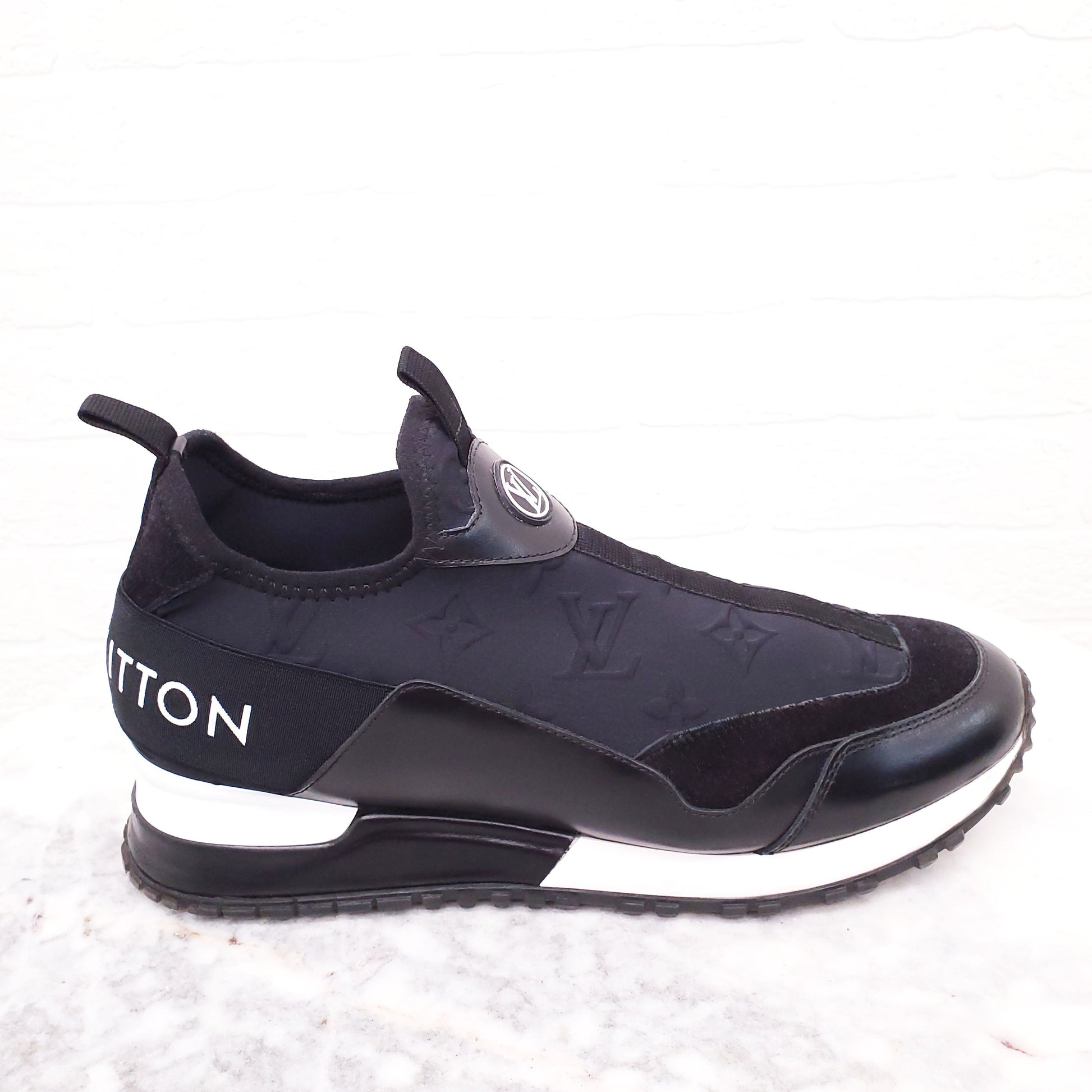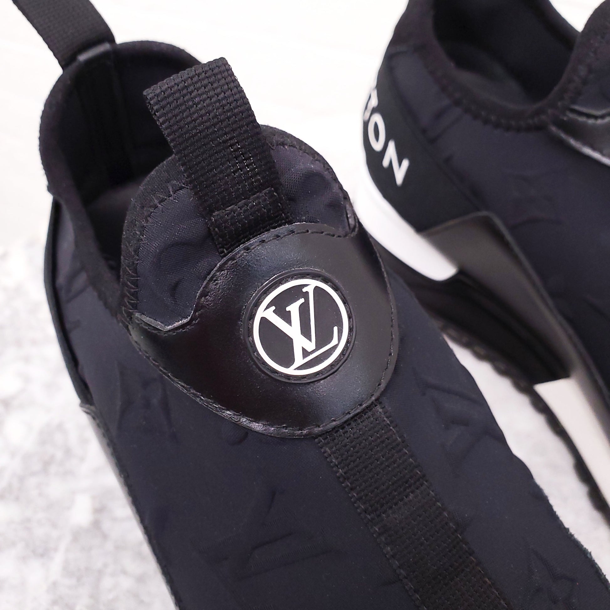 LOUIS VUITTON BLACK PULL ON LOGO SNEAKERS - SIZE 38