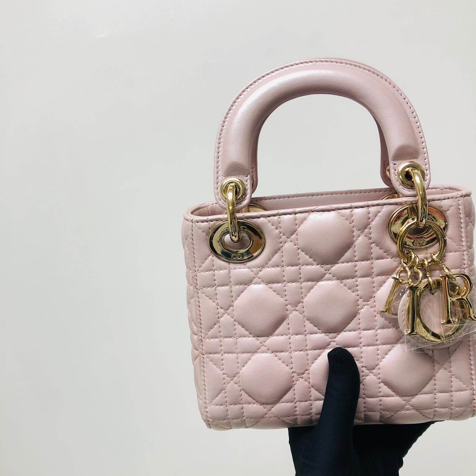Mini Lady Dior Bag In Baby Pearly Pink with Light Gold Hardware