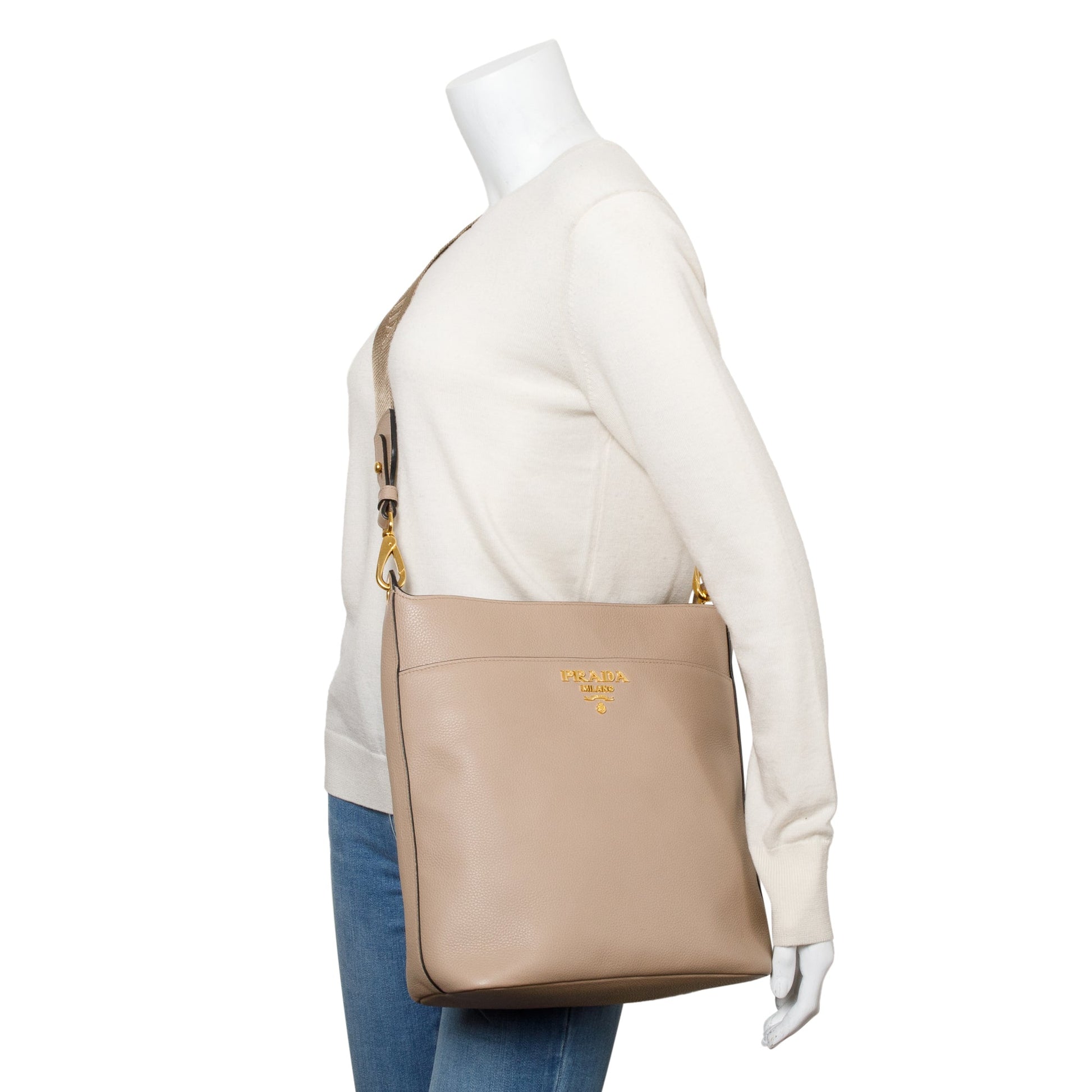 Prada Beige Vitello Daino Hobo Messenger Bag