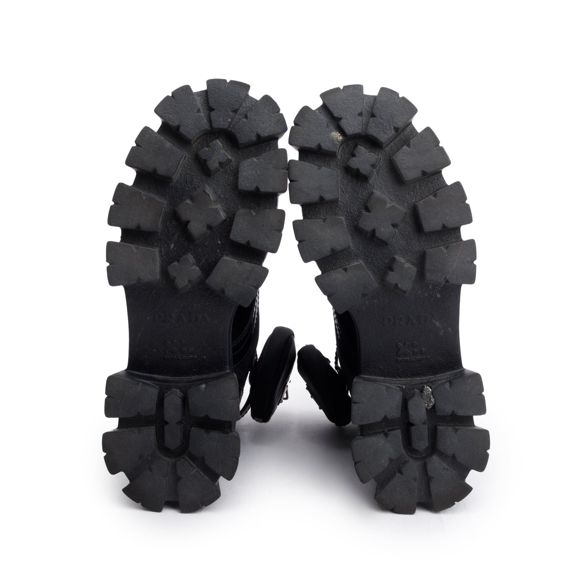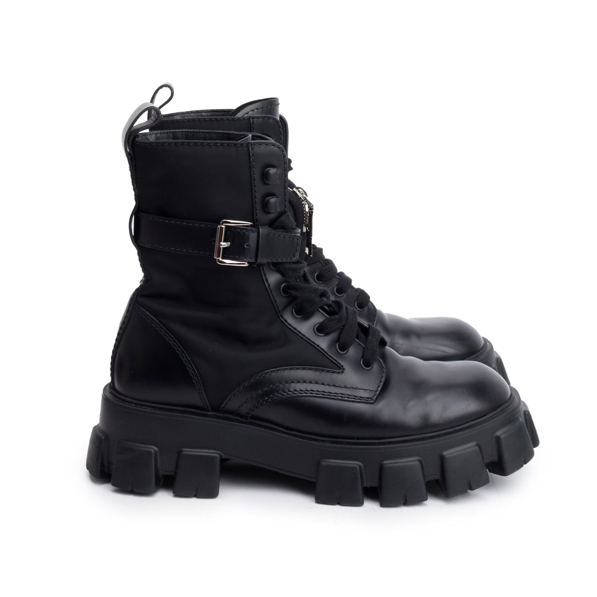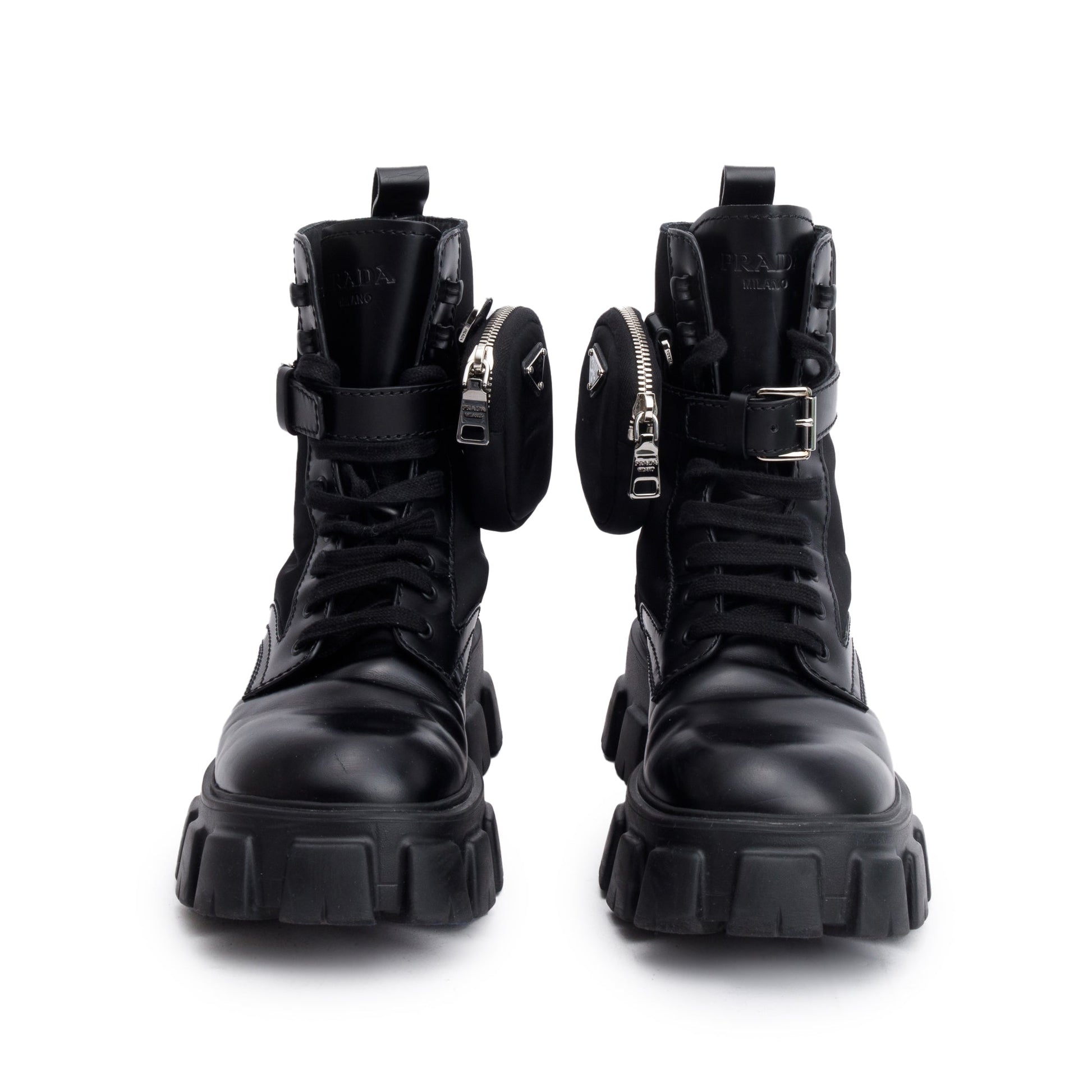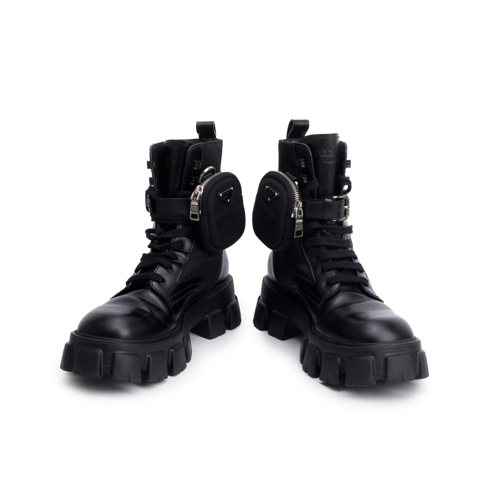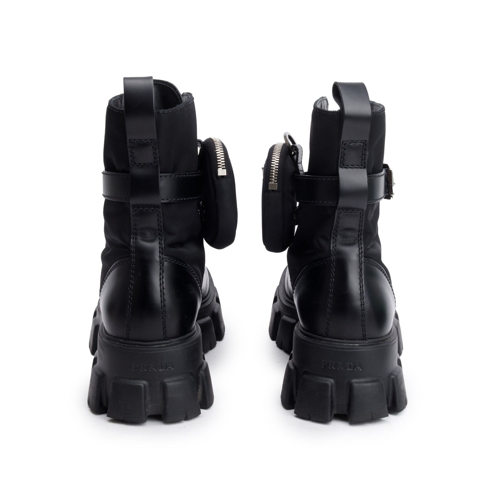 Prada Black Monolith Leather and Re-Nylon Boots with Pouch, Size 8