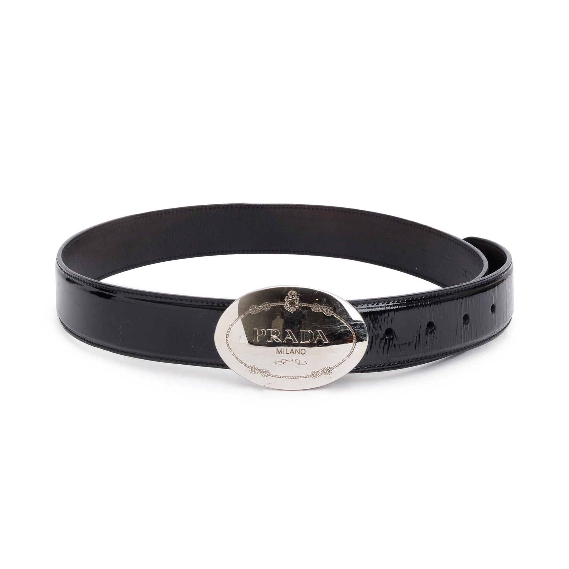 Prada Black Patent Leather Oval Buckle Belt
