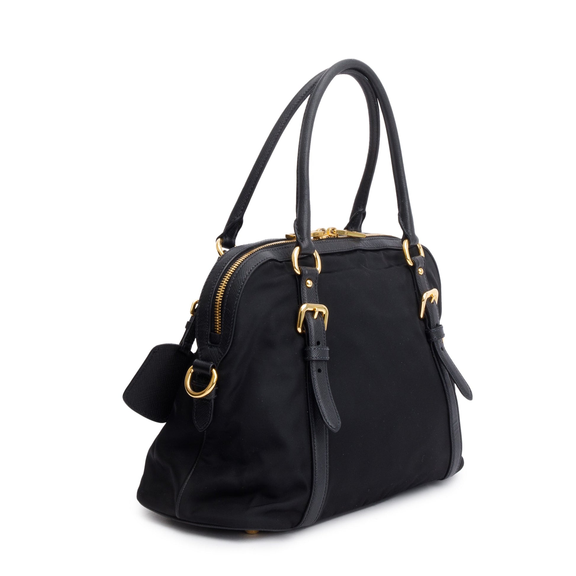 Prada Black Saffiano Leather-Trimmed Tessuto Nylon Shoulder Bag