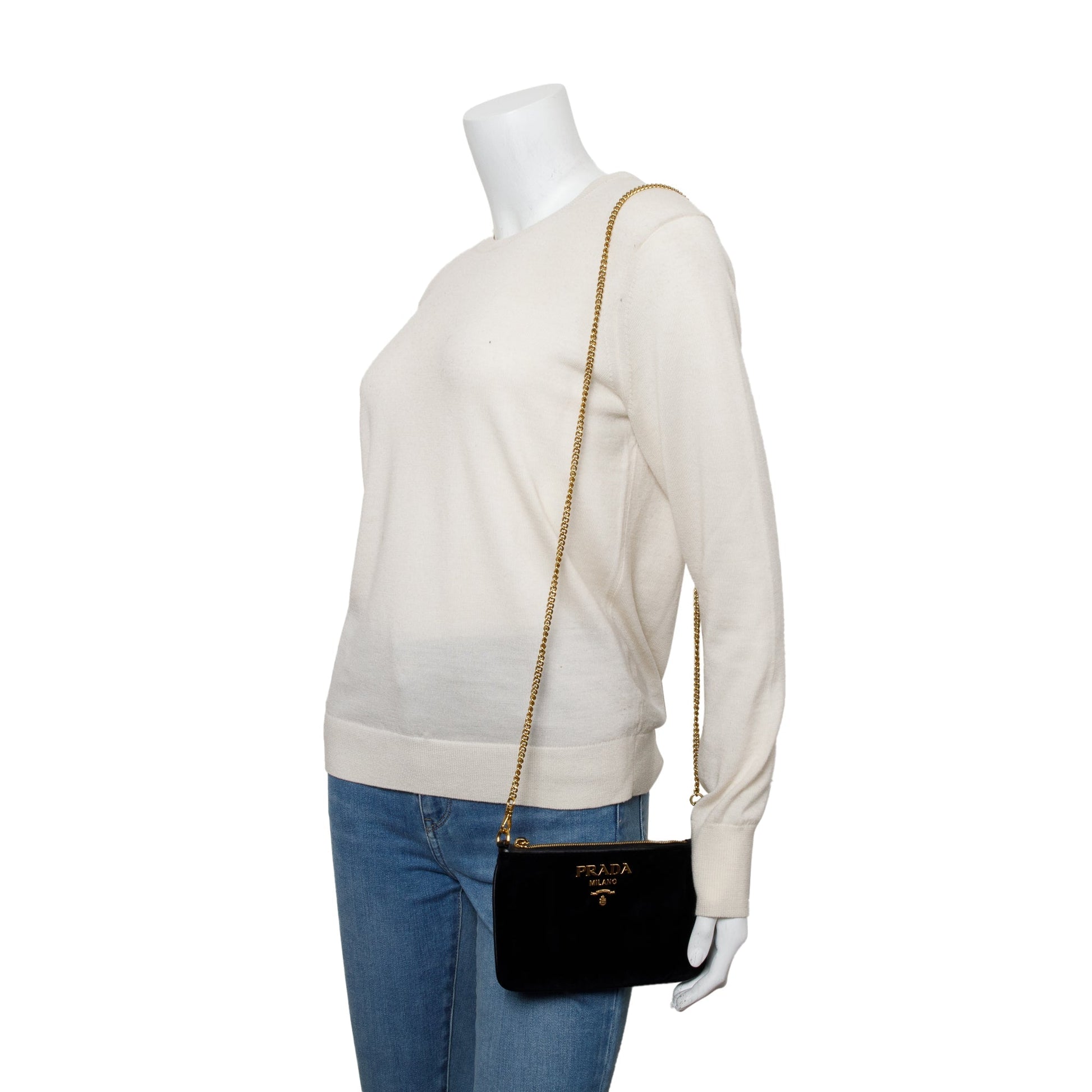 Prada Black Velluto Chain Clutch