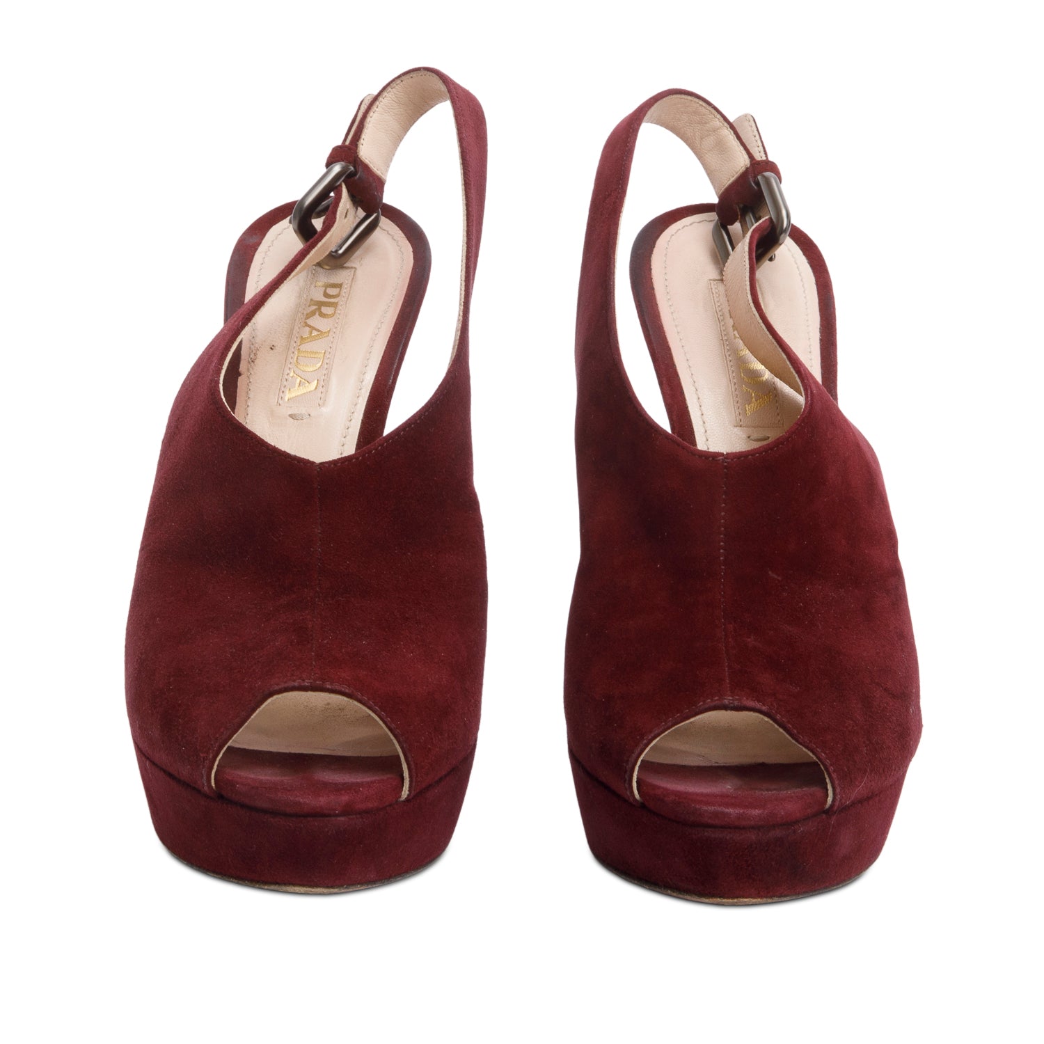 Prada Burgundy Suede Slingback Pumps, Size 38