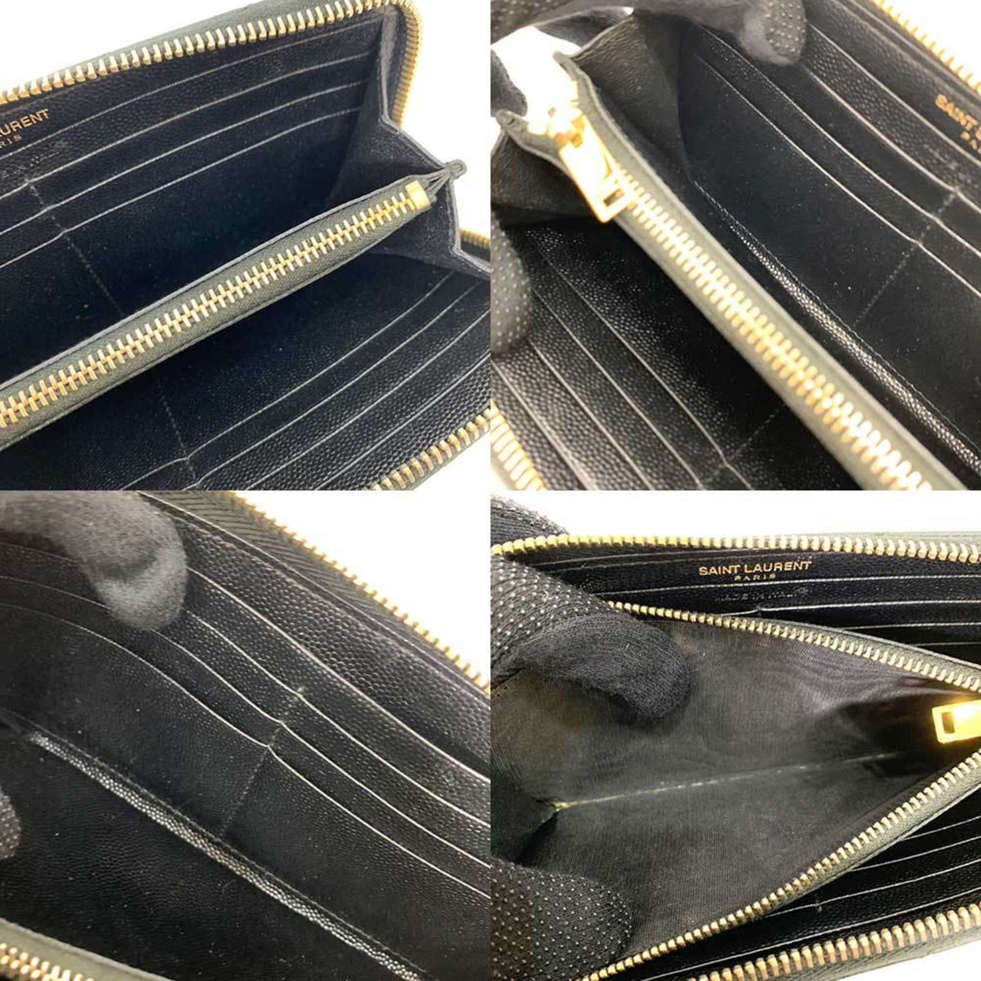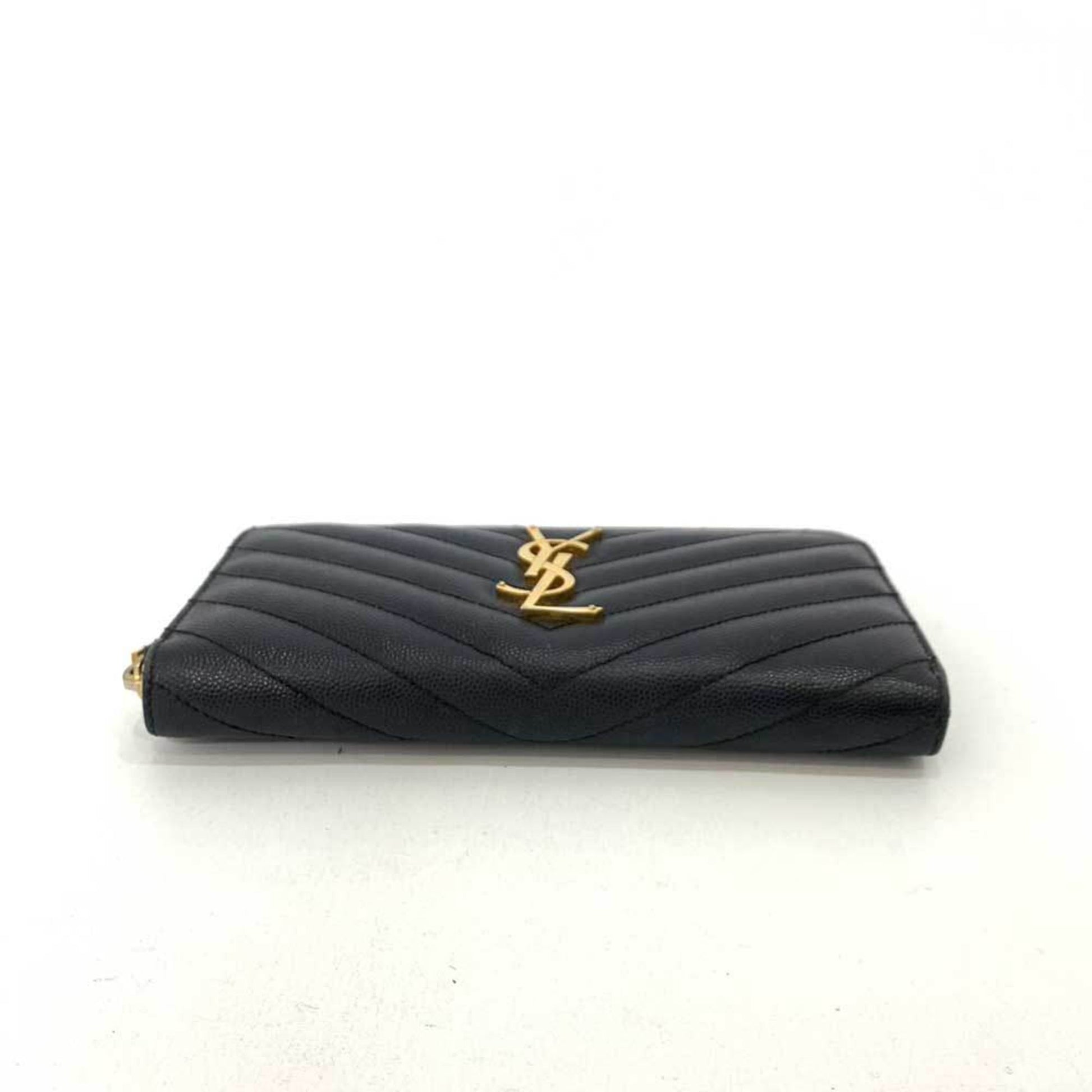 Saint Laurent Wallet Long Round Dark Navy YSL Monogram Quilted Full Zip Ladies Leather 358094 SaintLaurent