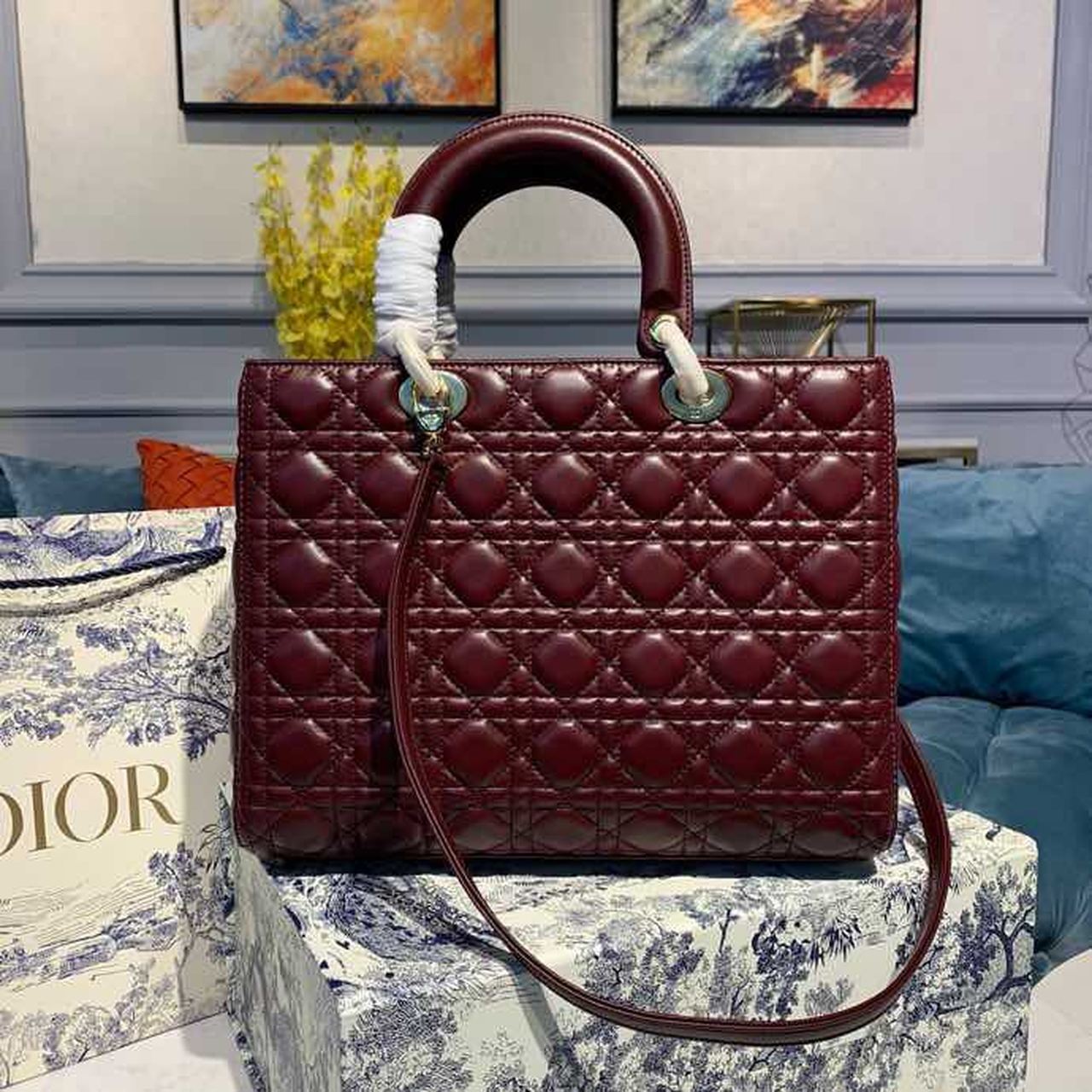 Top Quality Large Lady Bag Gold Toned Hardware Burgundy Cannage For Women 12.5in/32cm CD