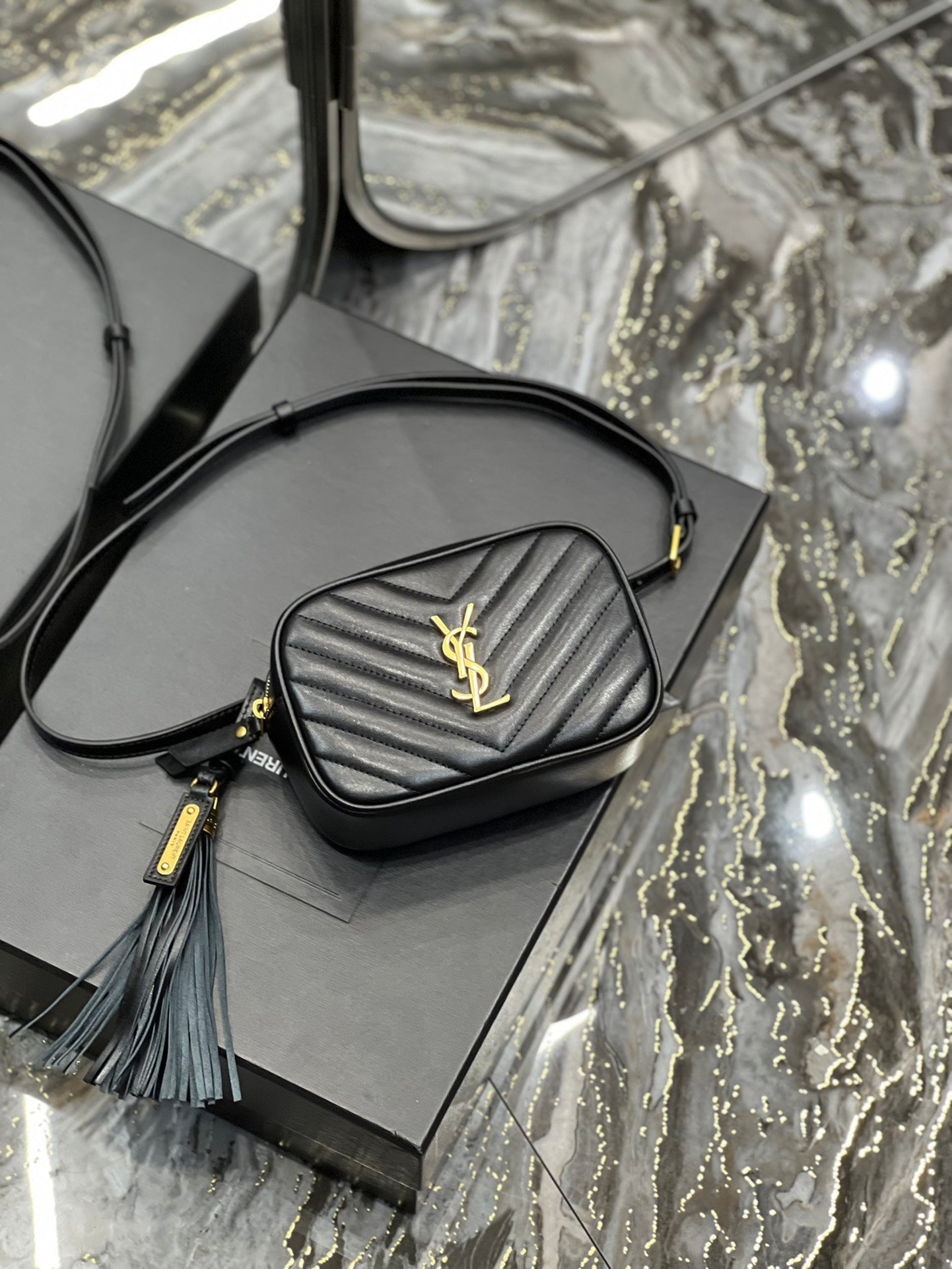 Top Quality Lou Belt Bag Black In Matelassé Gold Toned Hardware For Women 6.1in/15cm YSL 614031DV7071000