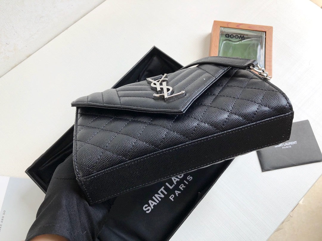 YSSL Envelope Small Bag In Mix Matelassé Grain De Poudre Black For Women 8in/21cm YSL 600195BOW921000