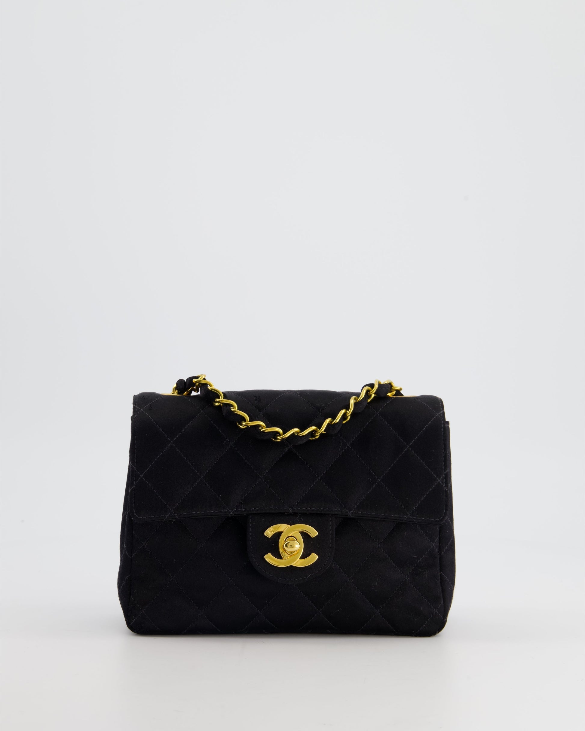 *HOT* Chanel Satin Black Mini Square Flap Bag with 24K Gold Hardware